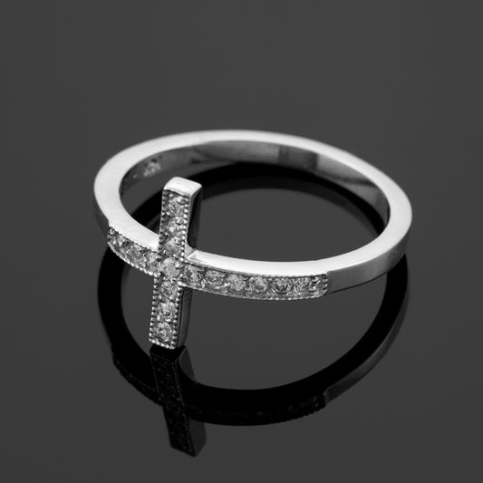 Diamond Sideways Cross Ladies Gold Ring (yellow, white, rose gold, 10K, 14K)