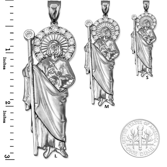 White Gold Saint Jude CZ Charm Pendant (Small/Medium/Large,10K, 14K)