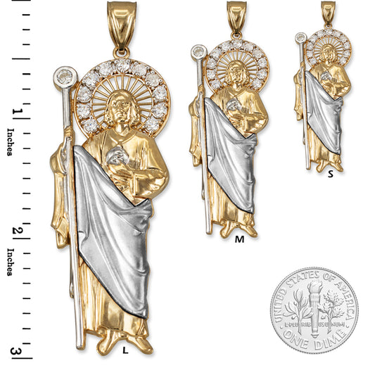 Two-Tone Gold Saint Jude CZ Charm Pendant (Small/Medium/Large,10K, 14K)