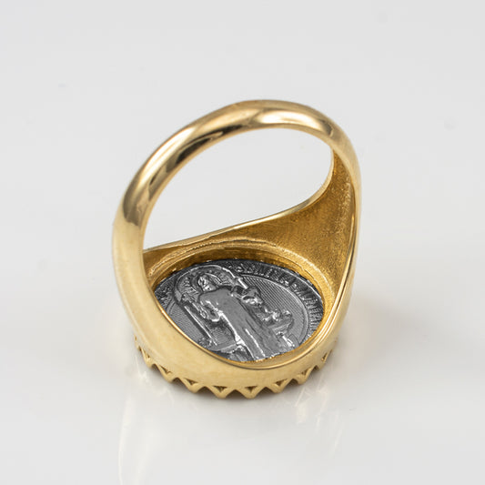 Two-tone Yellow Gold St. Benedict Mens Statement Ring