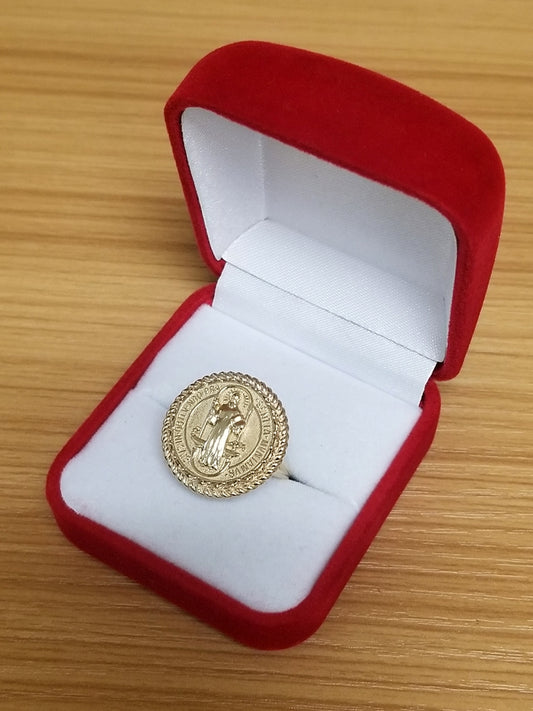Yellow Gold Saint Benedict Medallion Womens Ring