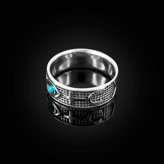 Sterling Silver Turquoise Evil Eye Sideways Cross Lucky Horseshoe Ring Band