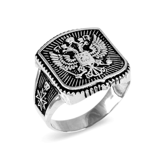 Sterling Silver Russian Imperial Crest Mens Orthodox Cross Ring