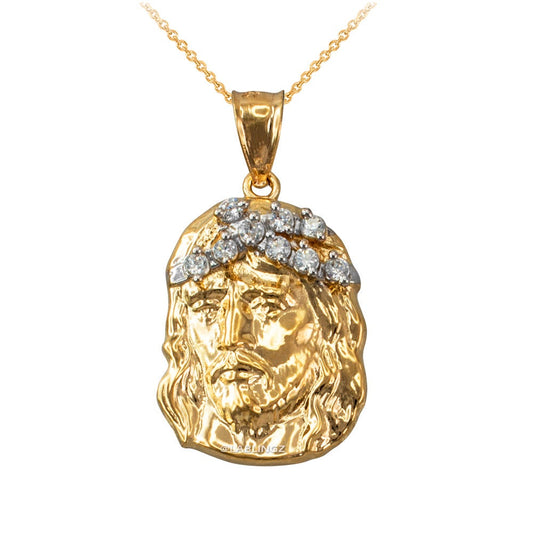 Gold Jesus Face CZ Charm Necklace (10K, 14K, yellow, white, rose gold)