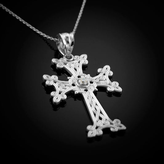 Gold Armenian Cross Diamond Solitaire Pendant Necklace (10k, 14k, yellow, white, rose gold)