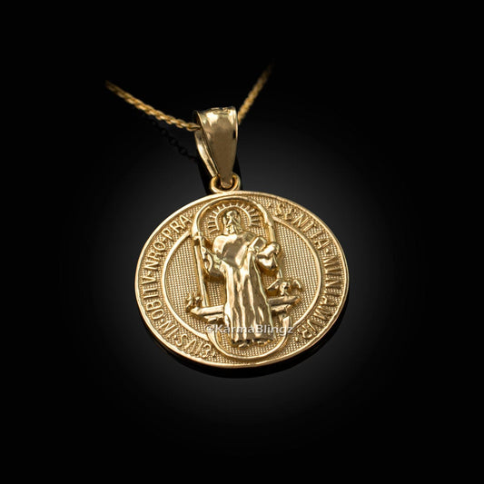 Solid Gold St. Benedict Reversible Medallion Charm Necklace (yellow, white, rose gold, 10k/14k)