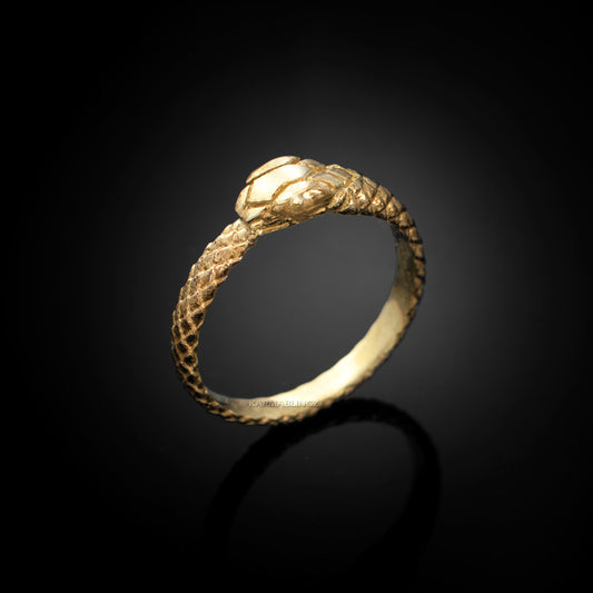 • Solid Gold Tail Biting Ouroboros Snake Ring Karma Blingz