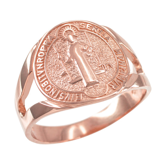 • Rose Gold Saint Benedict Medallion Womens Ring Karma Blingz