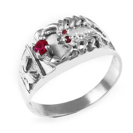 Sterling Silver Ruby Red CZ July Birthstone Mens Celtic Ring