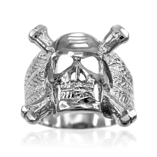 Sterling Silver Biker Ring Skull and Bones Men's Chopper Ring