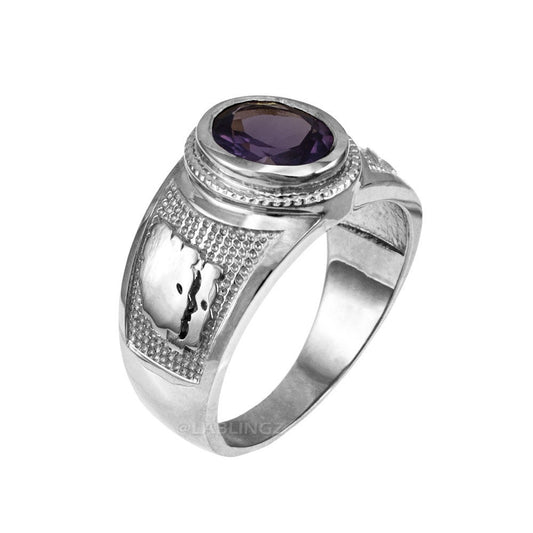 Sterling Silver Gemini Zodiac Sign June Birthstone Violet CZ Ring