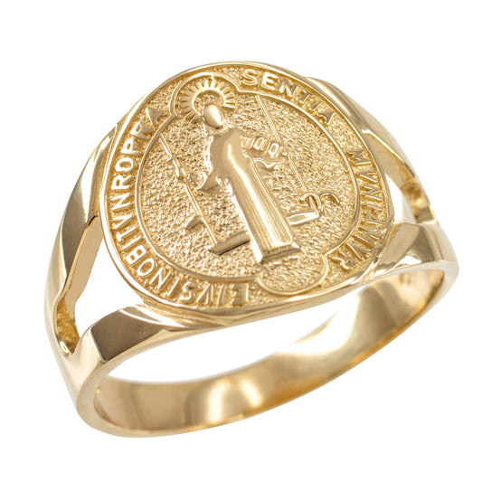 Yellow Gold Saint Benedict Medallion Womens Ring