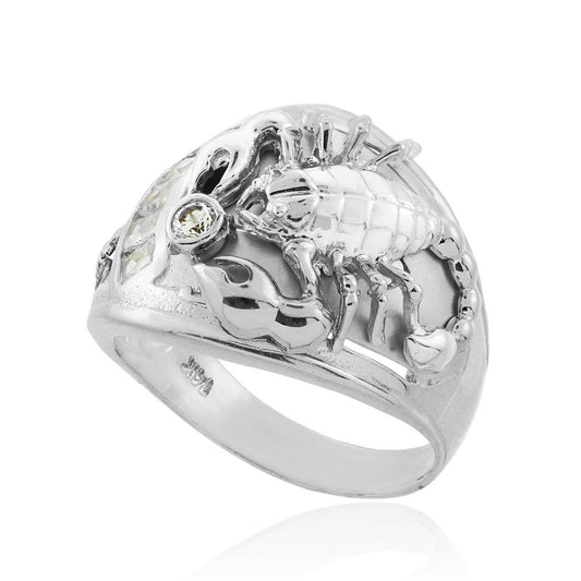 Mens Sterling Silver Scorpion CZ Statement White Eagle Ring