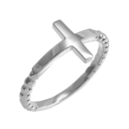 Polished Sterling Silver Sideways Cross Ladies Ring