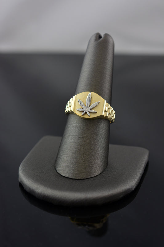 Gold Marijuana Weed Leaf Mens Watchband Ring