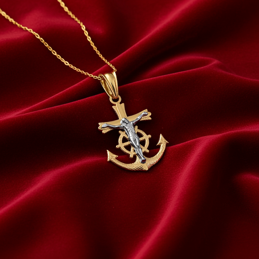 Gold Mariner Anchor Crucifix Cross Pendant Necklace (yellow, white, rose gold, 10k, 14k)