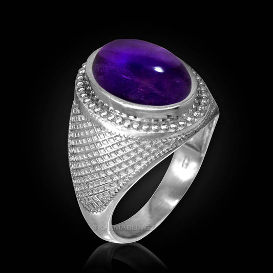 Sterling Silver Purple Amethyst Cabochon February Birthstone Ring