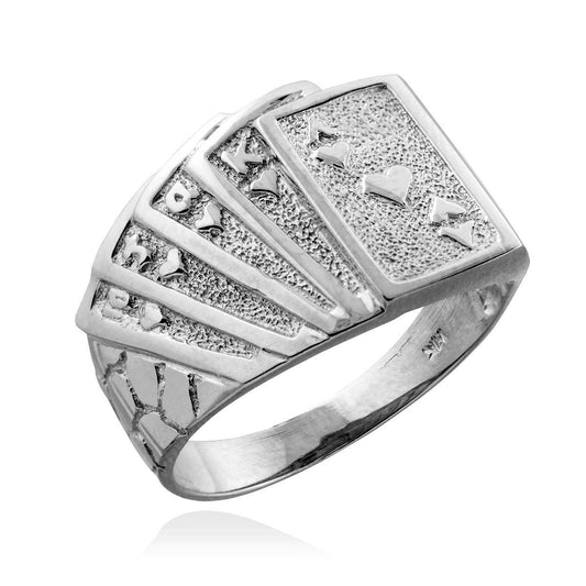 Sterling Silver Royal Flush of Hearts Poker Cards Nugget Ring