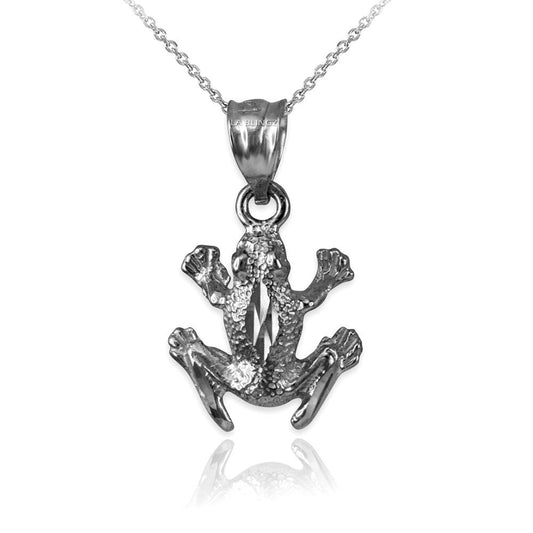 Sterling Silver Textured DC Frog Charm Necklace