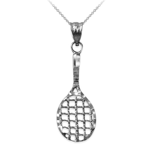 Sterling Silver Tennis Racket DC Pendant Necklace