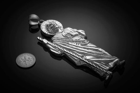 Sterling Silver Our Lady of Guadalupe Mens Large DC Pendant