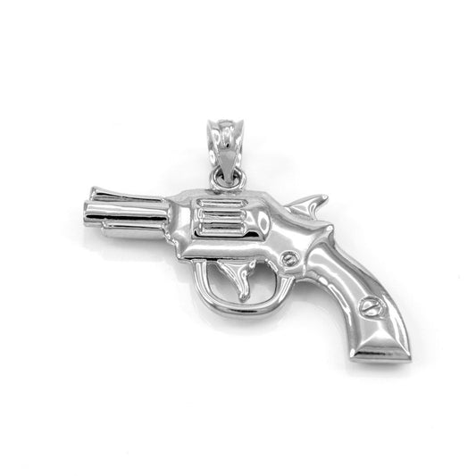 Sterling Silver Revolver Pistol Gun Pendant Necklace