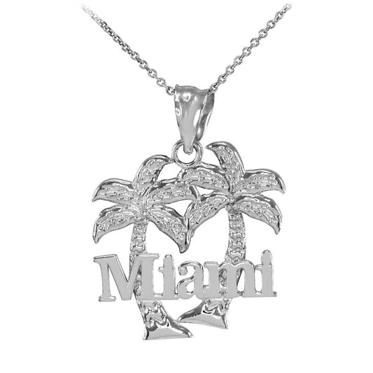 Sterling Silver Miami City Palm Trees Pendant Necklace