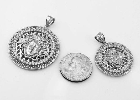 Sterling Silver Medusa CZ Medallion Pendant (small, large)
