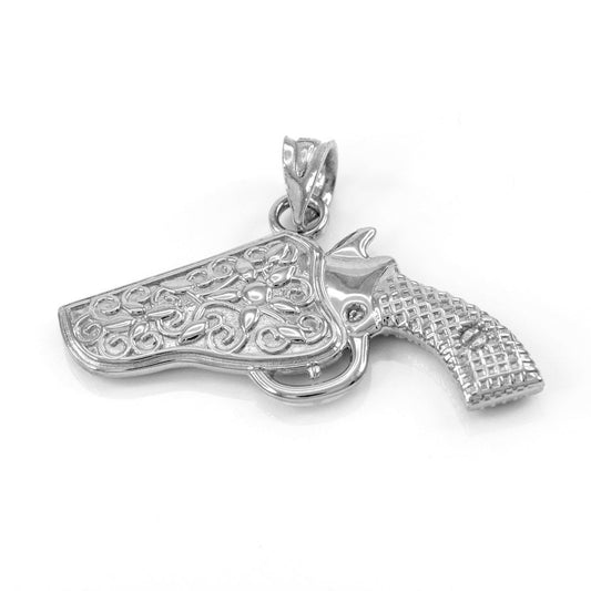 Sterling Silver Holstered Gun Revolver Pistol Pendant Necklace