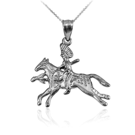 Sterling SIlver Indian Chief Horse Rider Pendant Necklace