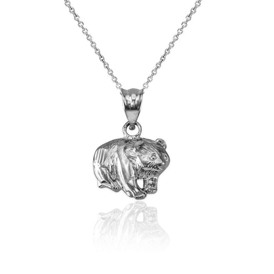 Sterling Silver Grizzly Bear Tiny Charm Necklace