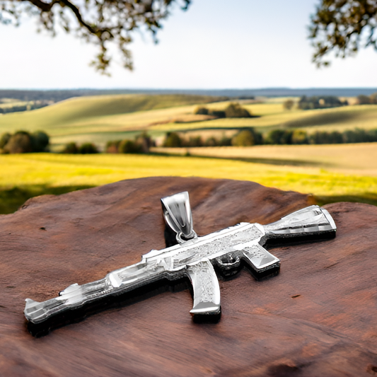 Sterling Silver AK-47 Rifle Gun Pendant - AK47 Silver Pendant