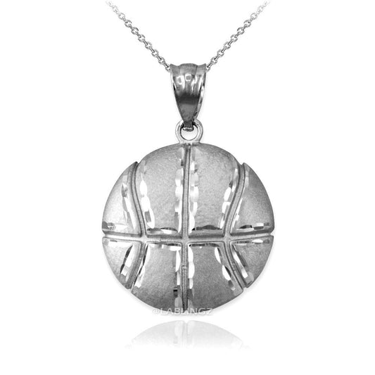 Sterling Silver Basketball Satin DC Pendant Necklace