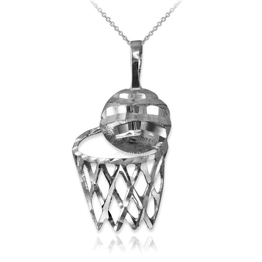 Sterling Silver Basketball Hoop DC Pendant Necklace