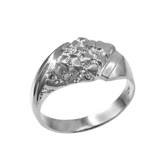 Mens Sterling Silver Diamond-shape Nugget Ring