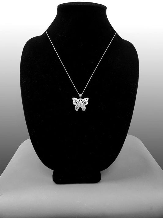 Silver Filigree Butterfly Midsize Pendant Necklace
