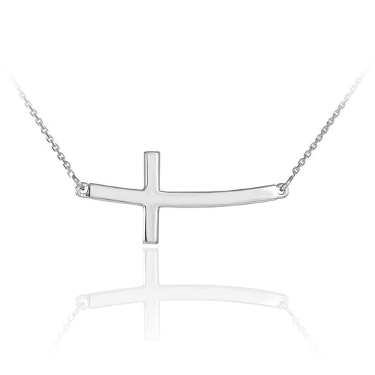 Silver Sideways Cross Necklace .925 Solid Sterling Silver Curved Sideways Cross Necklace