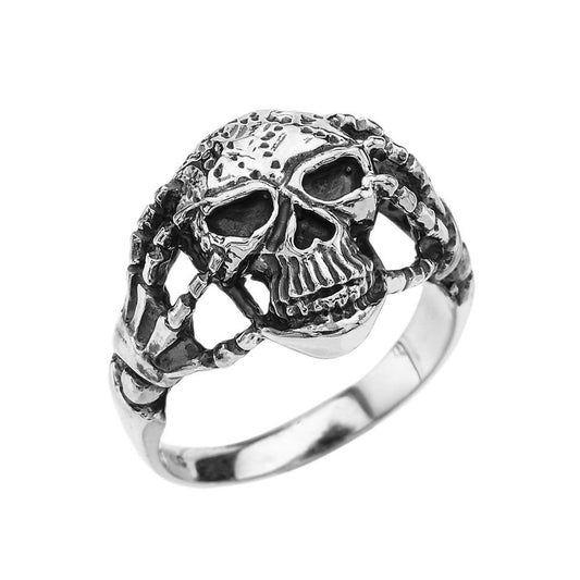 Sterling Silver Skeletal Hands Gothic Skull Claw Midsize Ring