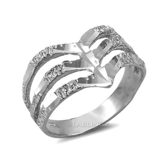 Sterling Silver Triple Chevron Ladies DC Nugget Ring