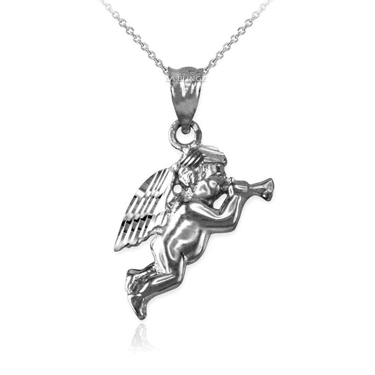 Sterling Silver Trumpeting Angel DC Charm Necklace