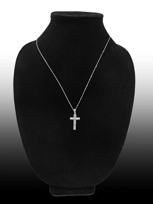 Sterling Silver Woodgrain Rope INRI Cross Pendant Necklace