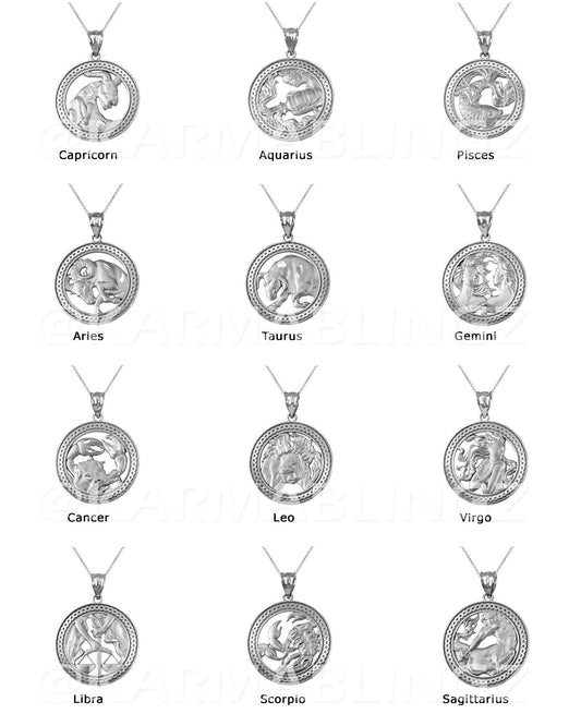 Sterling Silver Zodiac Open Medallion Satin DC Pendant Necklace