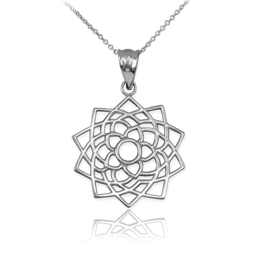 Sterling Silver Sahasrara (Unity) Chakra White Lotus Yoga Pendant Necklace