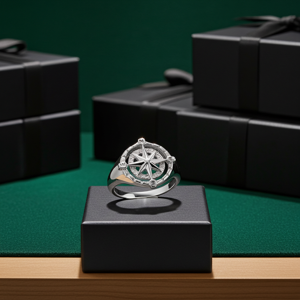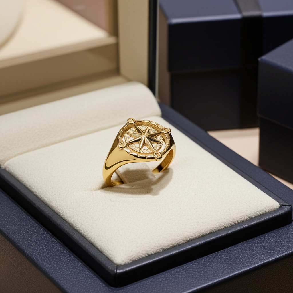 Whether styled as a gold signet ring, nautical compass ring, directional symbol ring, or modern women’s statement ring, this piece delivers timeless appeal with purpose.