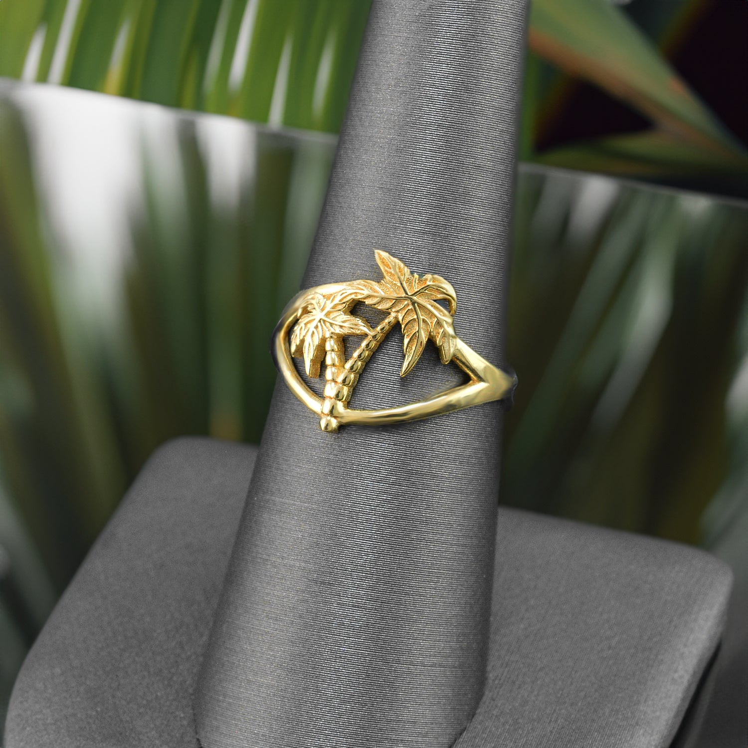 Elegant Gold Single Palm Tree Women’s Ring – 10K & 14K Yellow, White, Rose Gold