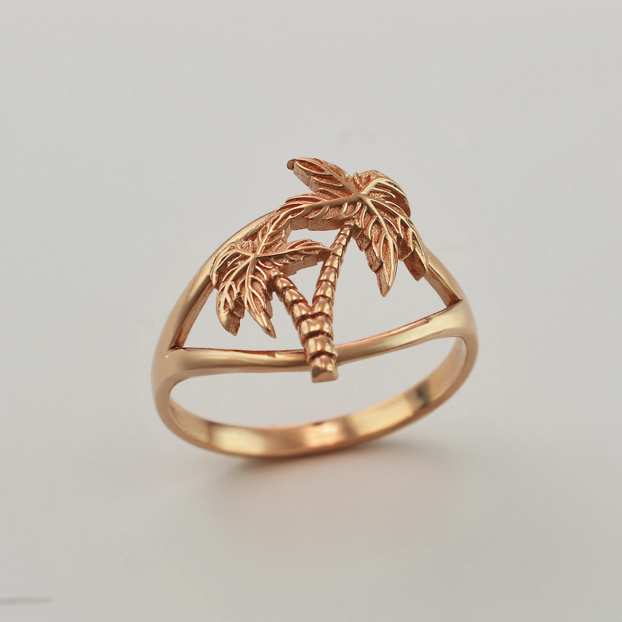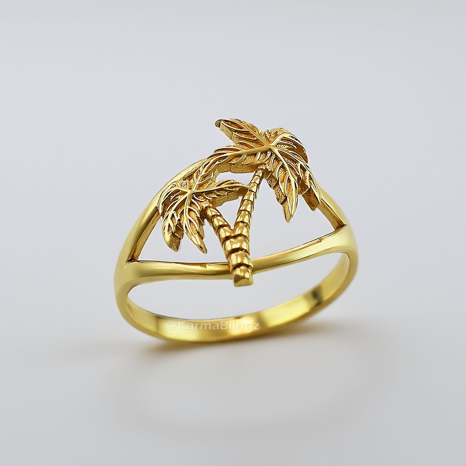 Gold Double Palm Tree Ring for Women | Yellow, White, Rose Gold, 10K & 14K