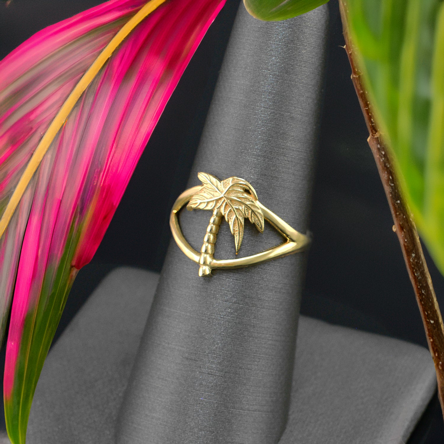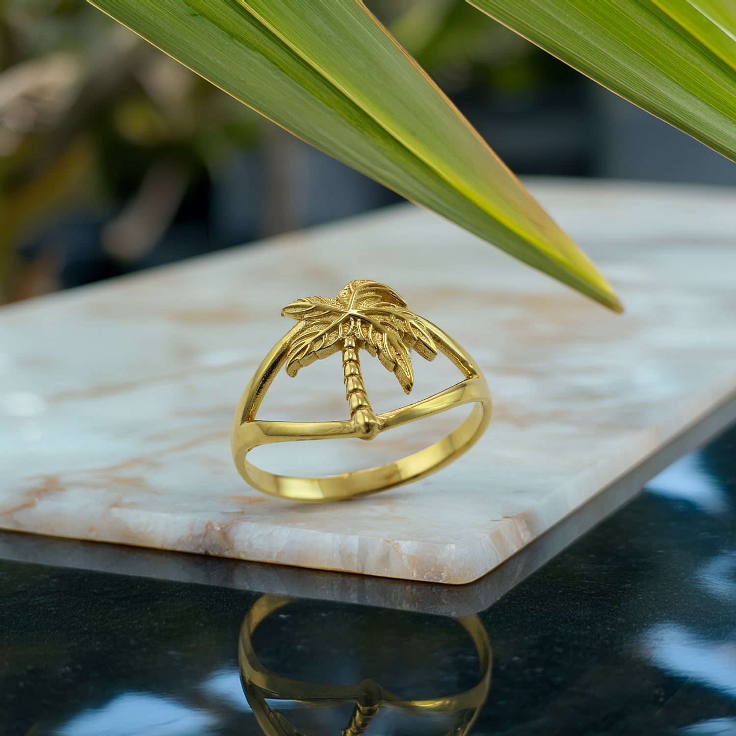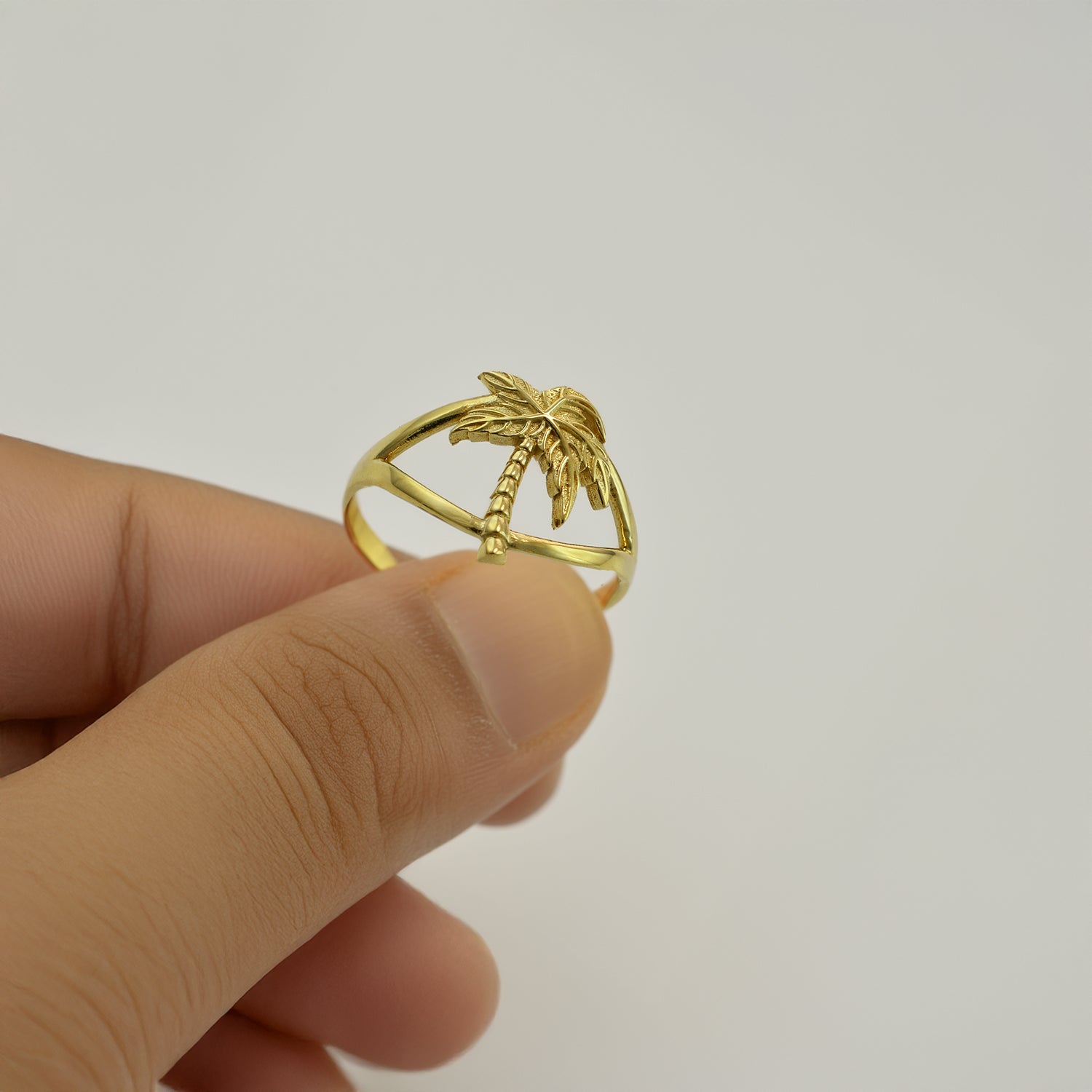 Gold Single Palm Tree Ring for Women | Yellow, White, Rose Gold, 10K & 14K