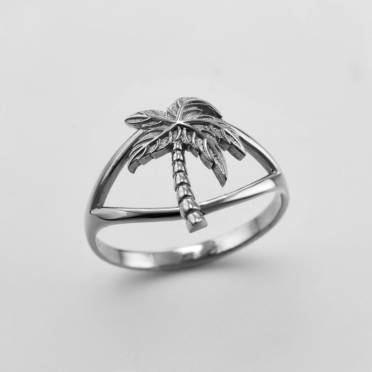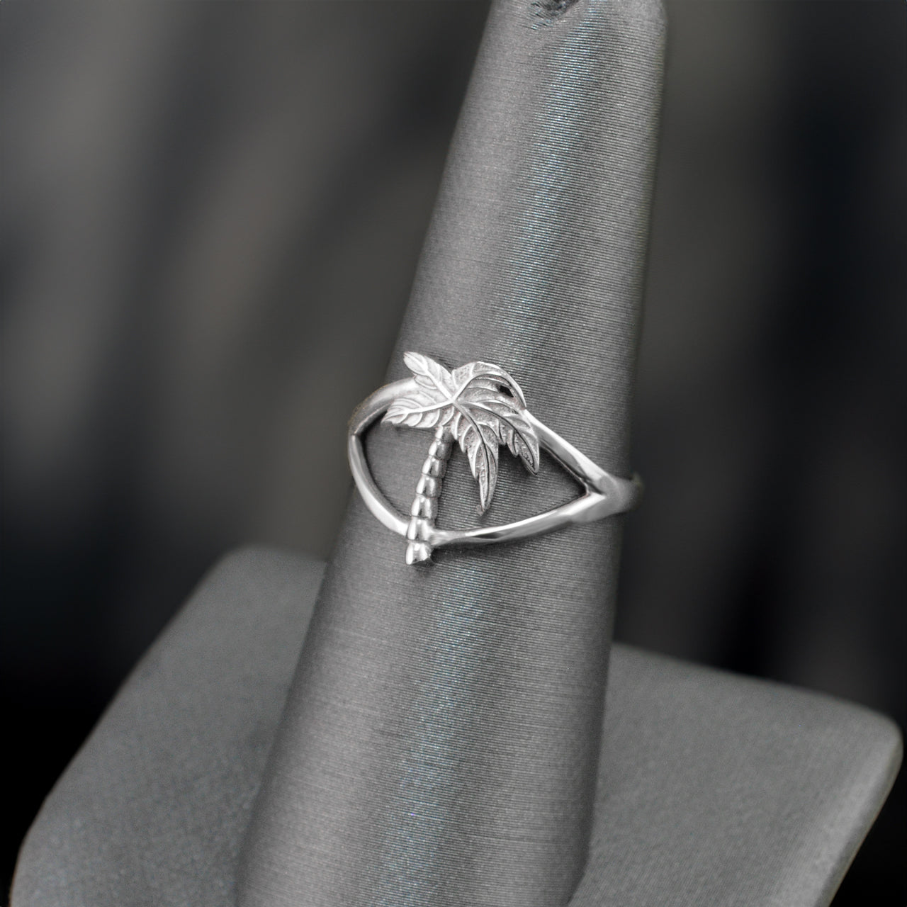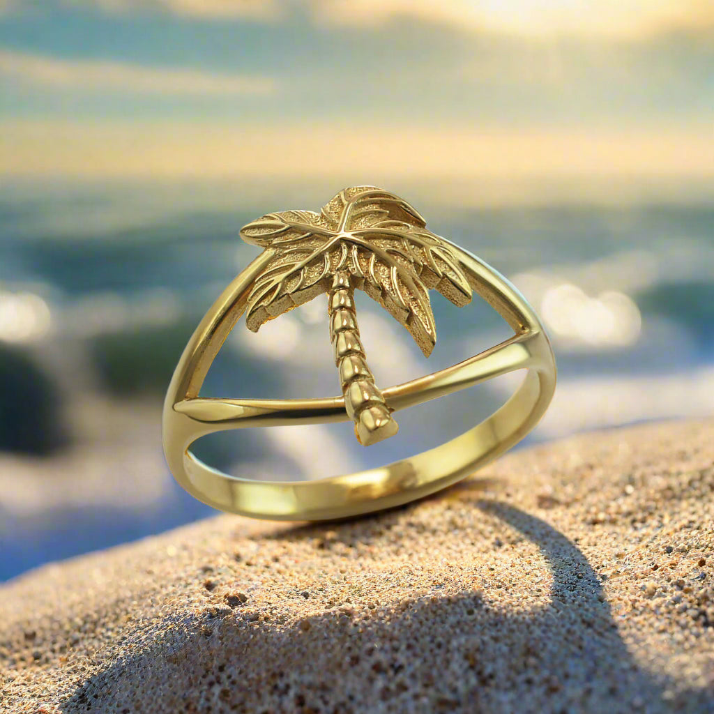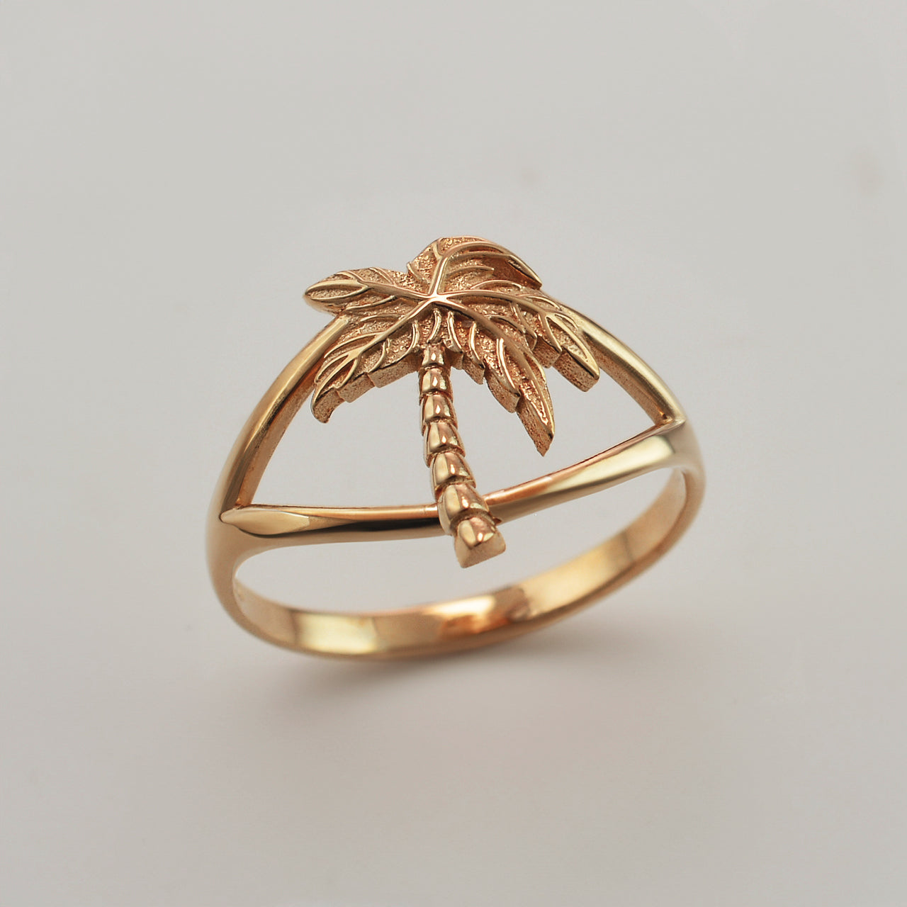Gold Single Palm Tree Ring for Women | Yellow, White, Rose Gold, 10K & 14K
