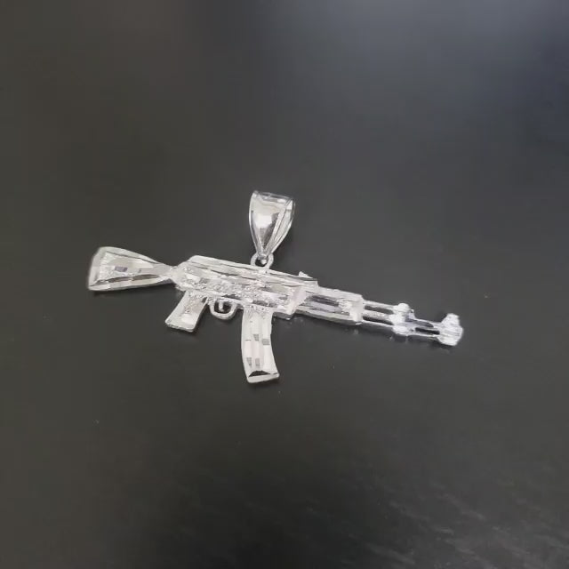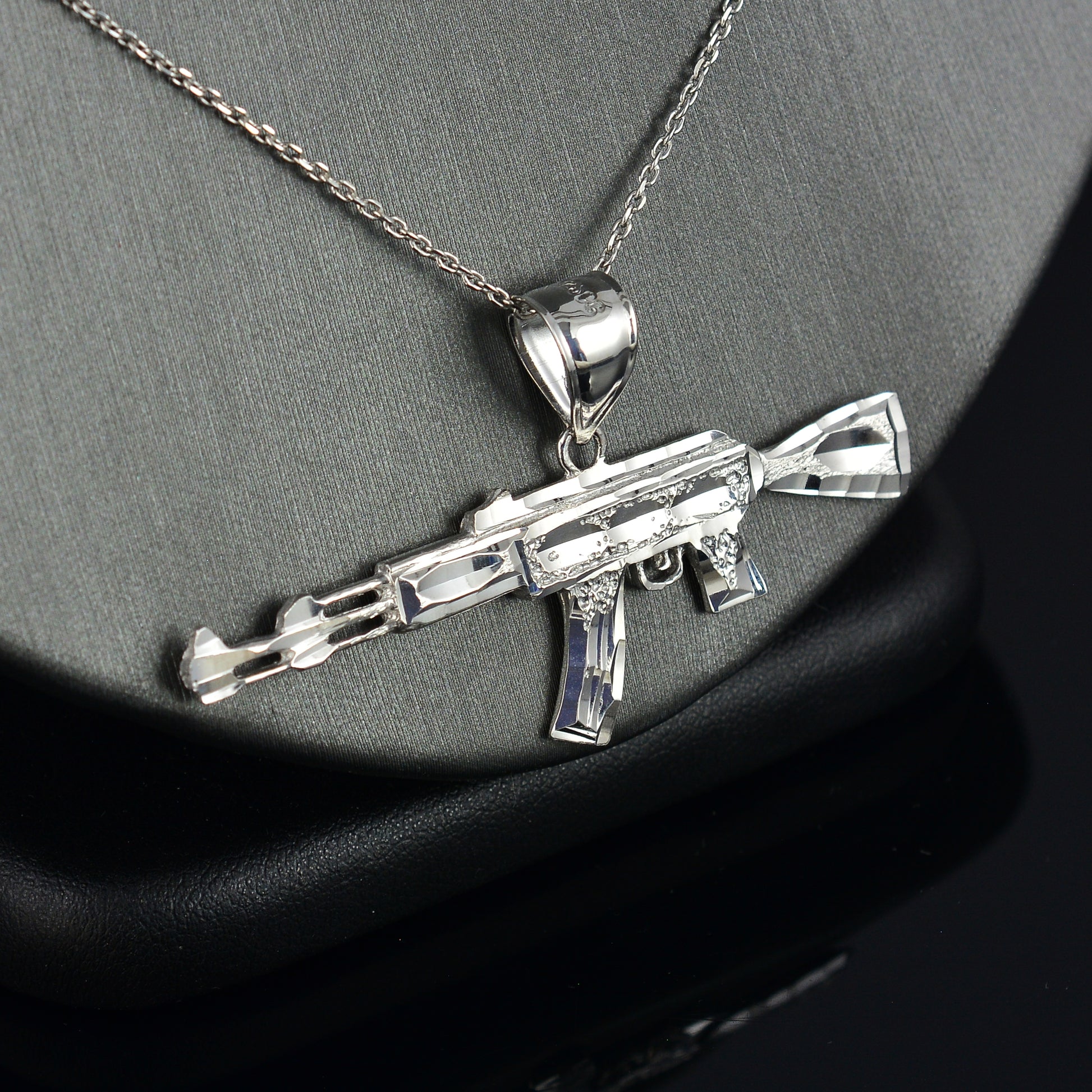 Sterling Silver AK-47 Rifle Gun Pendant - AK47 Silver Pendant